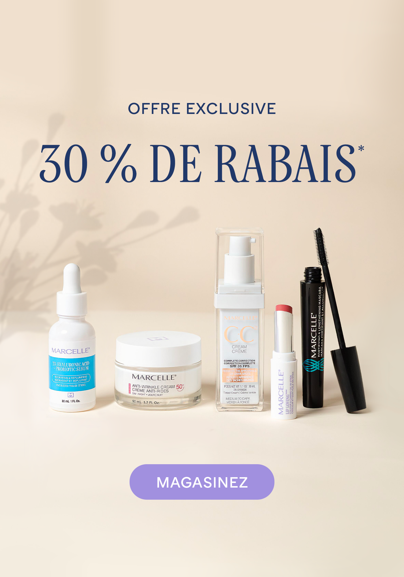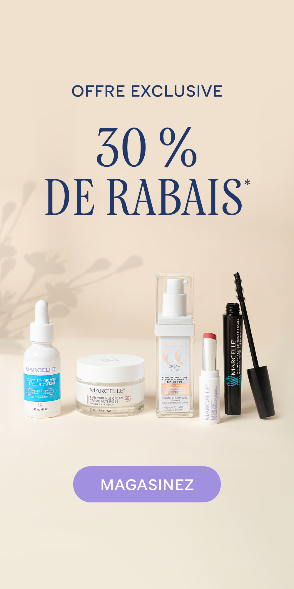 Depuis 1874, Marcelle crée des produits de soins de la peau répondant à tous les besoins. Marcelle offre des produits de qualité, sûrs, doux et rigoureusement efficaces. Peu importe ce que vous cherchez, nous avons tout ce dont vous avez besoin pour vous trouver belle et vous sentir belle.